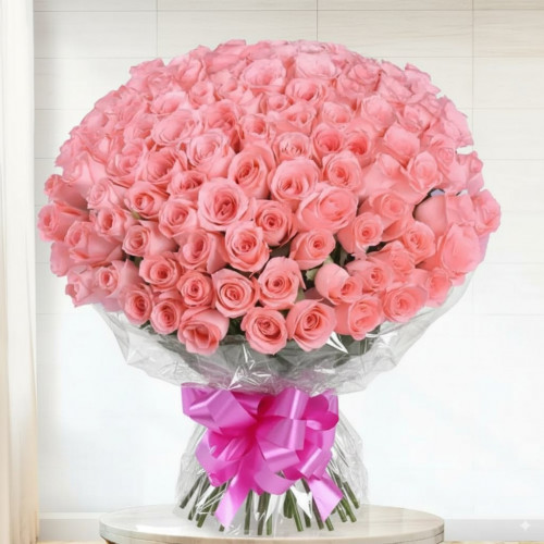 Make a breathtaking statement with our 100 Pink Roses Bunch. Overflowing with beauty and grace, these handpicked roses symbolize admiration, love, and appreciation. Elegantly arranged and wrapped, this luxurious bouquet is perfect for grand celebrations, romantic surprises, or heartfelt gestures that deserve nothing less than a hundred stunning blooms.