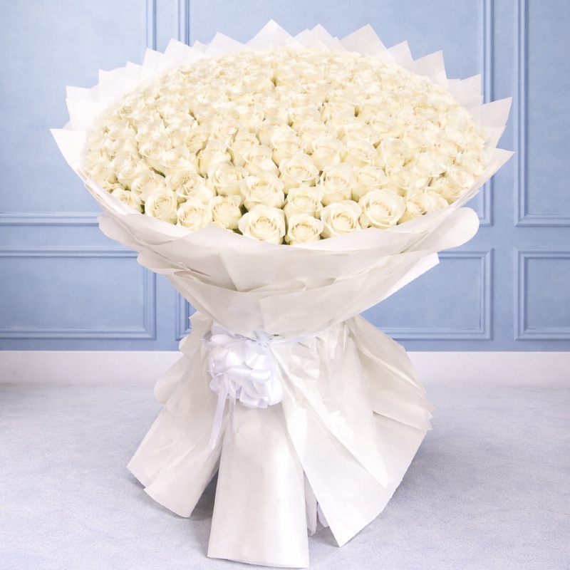 100 White Roses Bouquet