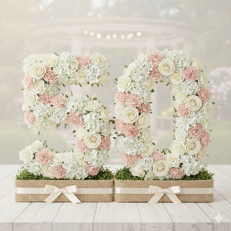 This arrangement adds a luxurious and timeless touch to birthdays, golden anniversaries, photo backdrops, or event tables. Designed to be eye-catching yet soft and elegant, it perfectly complements any décor theme.