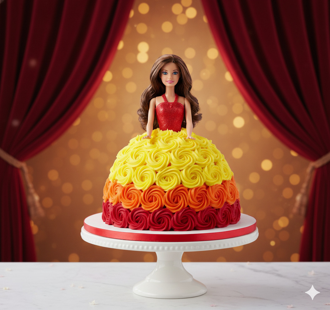 Celebrate in style with the Barbie Doll Theme Cake, featuring a beautifully designed doll centerpiece and layers of soft, flavorful sponge. Perfect for birthdays and special occasions, this cake combines enchanting visuals with delicious taste, making every celebration magical and memorable for kids and Barbie lovers alike.