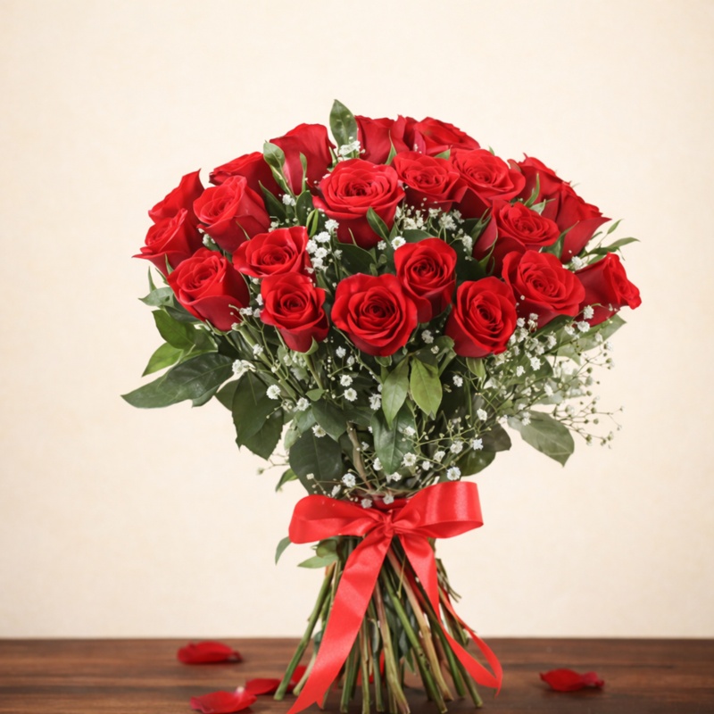 Hand-tied with a classic red ribbon, this bouquet is ideal for anniversaries, romantic surprises, birthdays, proposals, or special moments. The number 22 symbolizes harmony and commitment, making this bouquet a meaningful expression of heartfelt emotions.