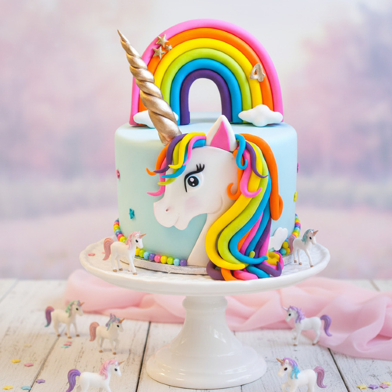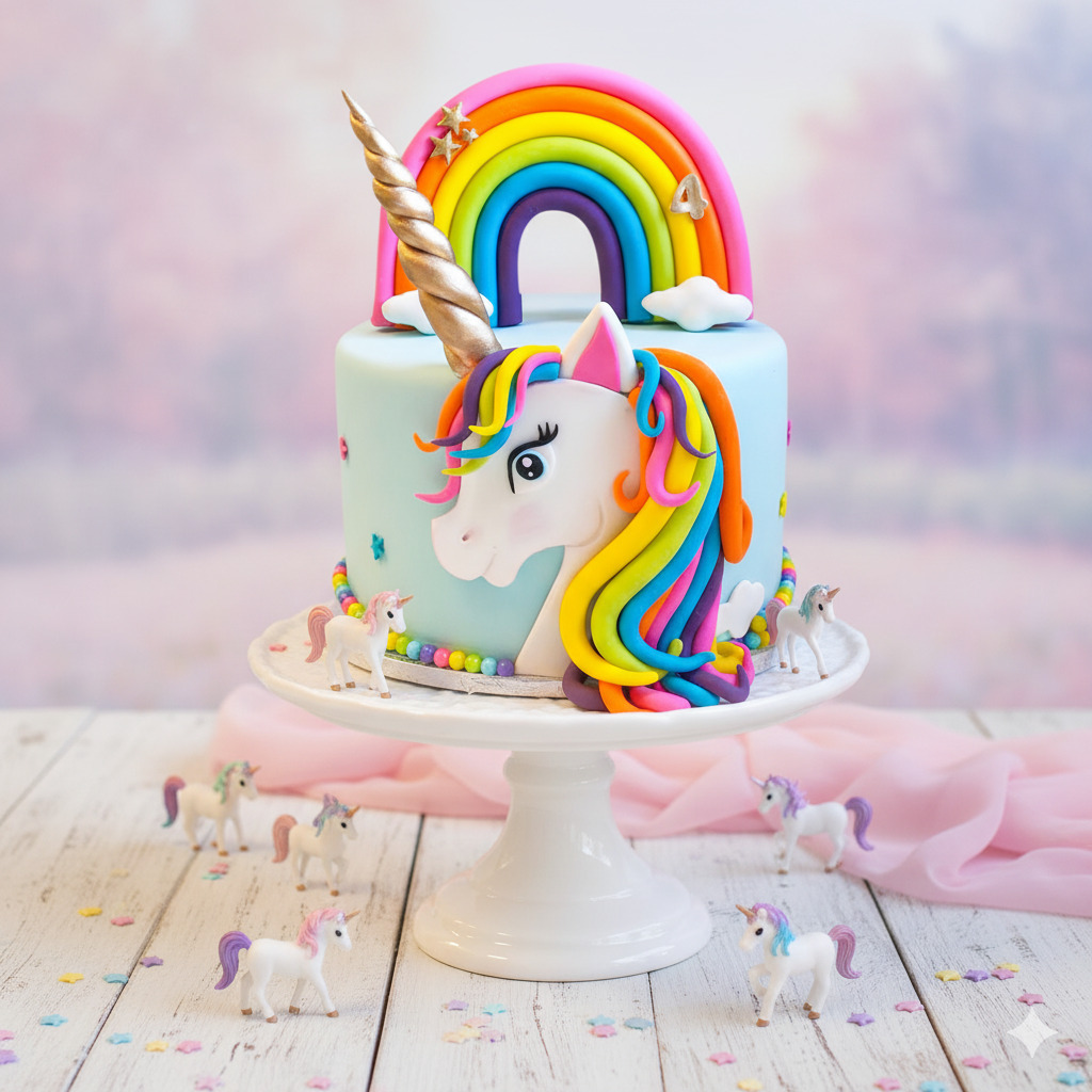 Step into a magical world with the Fairy Tale Unicorn Cake. Featuring vibrant unicorn decorations and luscious layers of sponge and frosting, this cake is perfect for birthdays and special celebrations. Delight kids and adults alike with its enchanting design and delicious flavor, turning every occasion into a fairy-tale moment.c