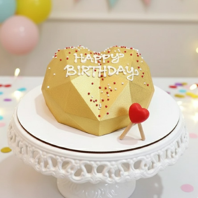 Celebrate love and joy with the Golden Heart Pinata Cake. This elegant heart-shaped cake hides delightful surprises inside, combining rich flavors with a golden touch. Perfect for anniversaries, birthdays, or romantic celebrations, it brings excitement, sweetness, and unforgettable memories to every special moment.