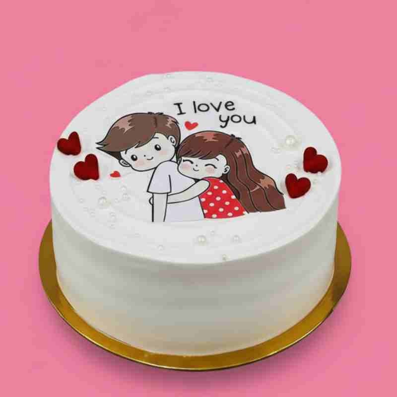 Celebrate love in the sweetest way with our Love Story Photo Cake. This elegant white-cream cake features an adorable cartoon couple design with “I Love You” printed on top, making it perfect for romantic moments. Decorated with delicate edible pearls and heart-shaped toppers, this cake is ideal for anniversaries, proposals, Valentine’s Day, birthdays, and surprise celebrations.