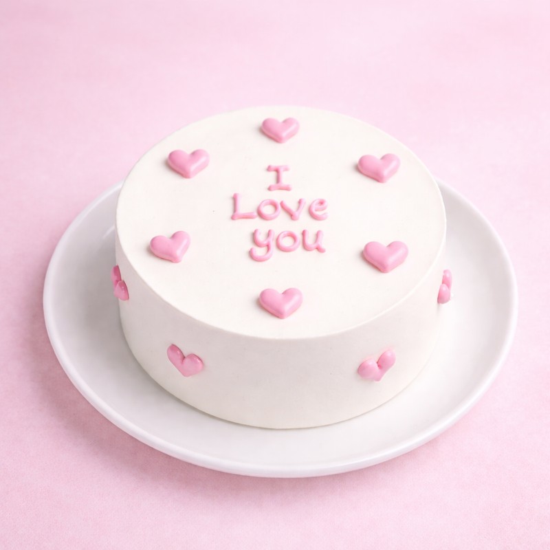 A beautiful white cream cake decorated with soft pink hearts and the sweet message “I Love You.” Perfect for Valentine’s Day, anniversaries, proposals, and romantic surprises. Made with fresh sponge layers and rich, smooth cream to make every celebration extra special.