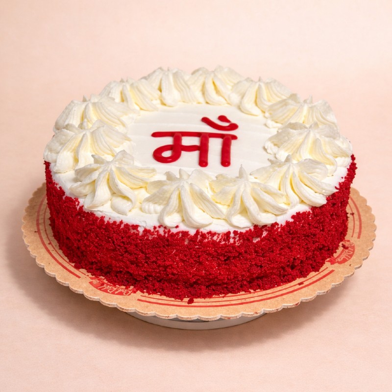 This beautiful red velvet cake is decorated with smooth white cream swirls, vibrant red crumbs, and a heartfelt message in the center. Its elegant design and rich red velvet finish make it a perfect choice for celebrating Mother’s Day and expressing your love for your mother.