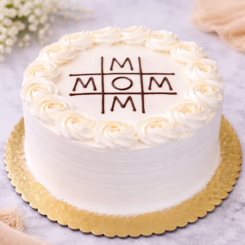 Celebrate your mother with this sophisticated cake featuring soft floral borders and a creative “MOM” design on top. The clean white finish and elegant detailing make it a timeless cake that perfectly expresses love, appreciation, and gratitude for your mom.