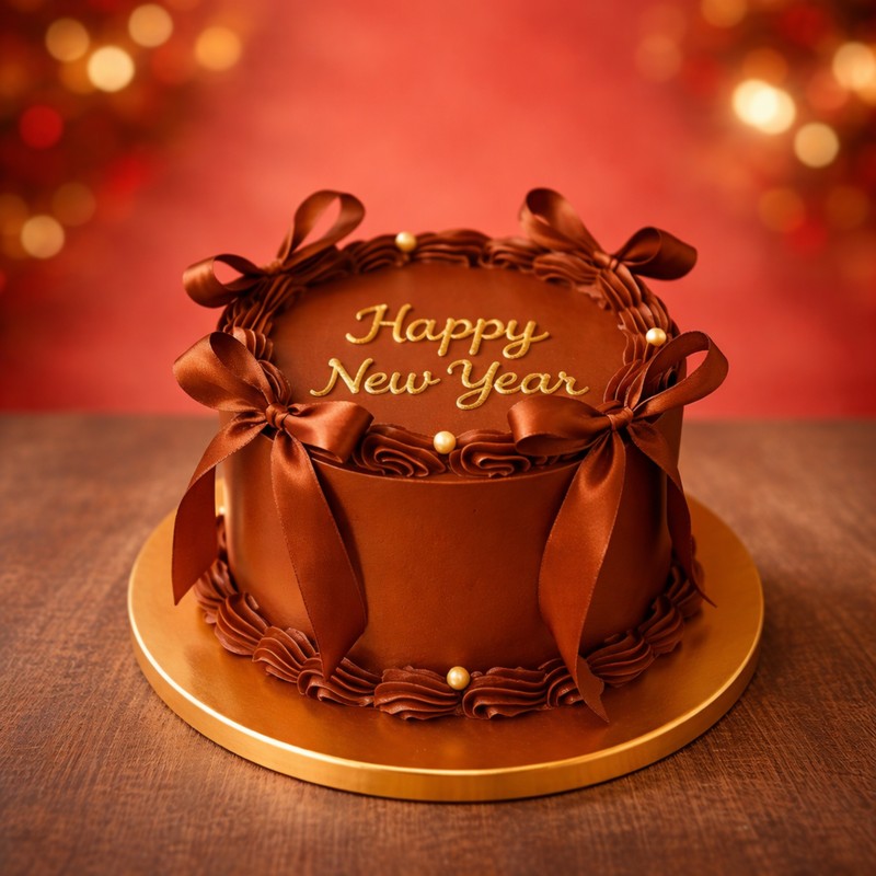 Celebrate new beginnings with this elegant chocolate cake beautifully finished with smooth frosting, delicate ribbon-style detailing, and a graceful “Happy New Year” message. Crafted for premium celebrations, this cake is perfect for New Year parties, midnight celebrations, and classy festive gatherings.