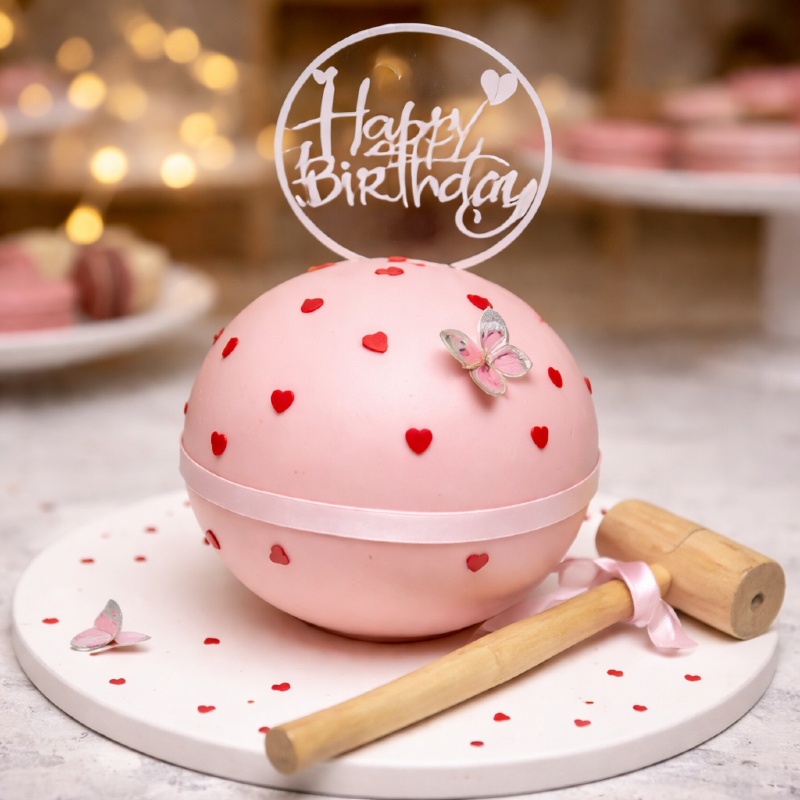 Celebrate love in the sweetest way with our Pinata Romantic Cake. Wrapped in a gorgeous shell, it hides a delightful surprise inside. Perfect for anniversaries, proposals, or special dates, this cake combines romance, taste, and fun, making every celebration truly memorable with a joyful smash.