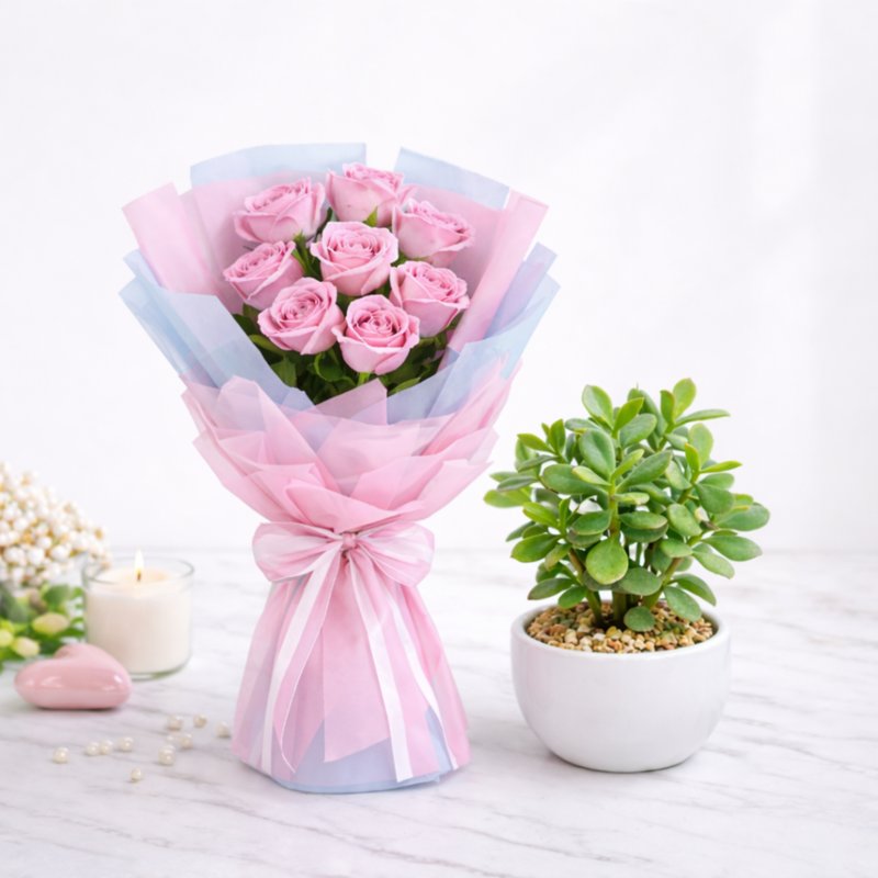 Celebrate Women’s Day with an elegant pink rose bouquet paired with a beautiful potted plant. The roses express admiration and grace, while the plant symbolizes growth and positivity. This thoughtfully curated combo is a meaningful gift to honour women with beauty that lasts beyond the moment.