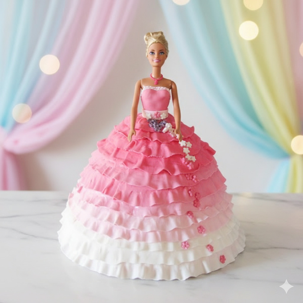 Add elegance and sweetness with the Pink N White Barbie Cake. Featuring a beautifully dressed Barbie doll in pink and white layers of soft sponge, this cake is perfect for birthdays and special occasions. Its charming design and delicious flavor make every celebration magical and memorable for kids and Barbie lovers.