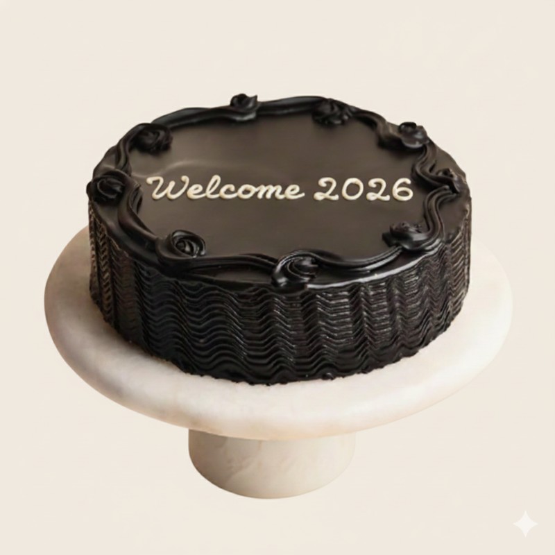 Ring in the New Year with this elegant Welcome 2026 Chocolate Truffle Cake, crafted with rich chocolate sponge layered with smooth, glossy chocolate truffle ganache. Finished with artistic chocolate piping and a refined “Welcome 2026” message, this cake is perfect for classy New Year celebrations and midnight countdown moments.